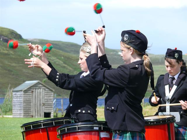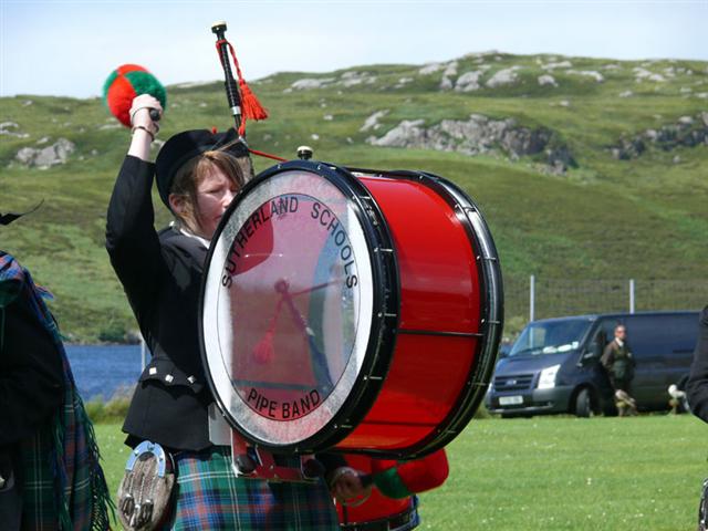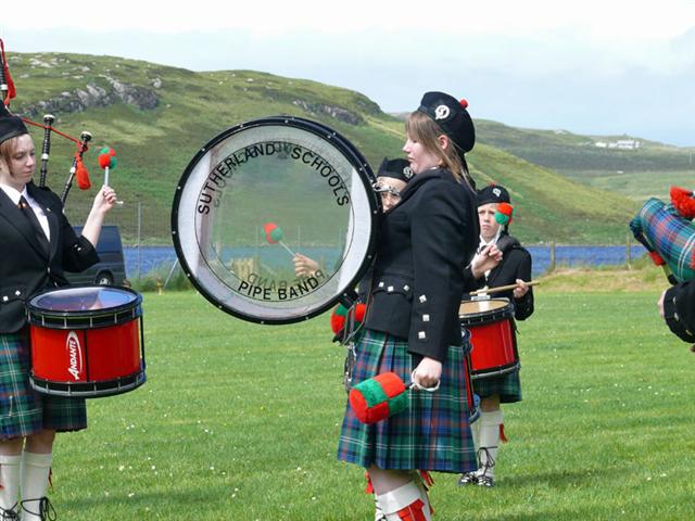 The Sutherland Schools Pipe Band played their socks off with some rousing tunes as they struggled against the wind.