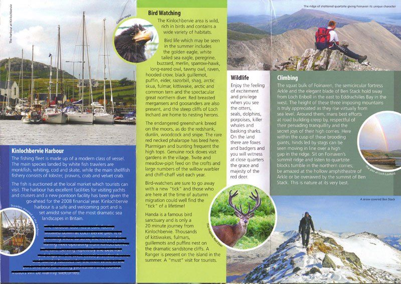 The Community Council, with support from local businesses and organisations,have produced a brochure promoting Kinlochbervie and the surrounding area..