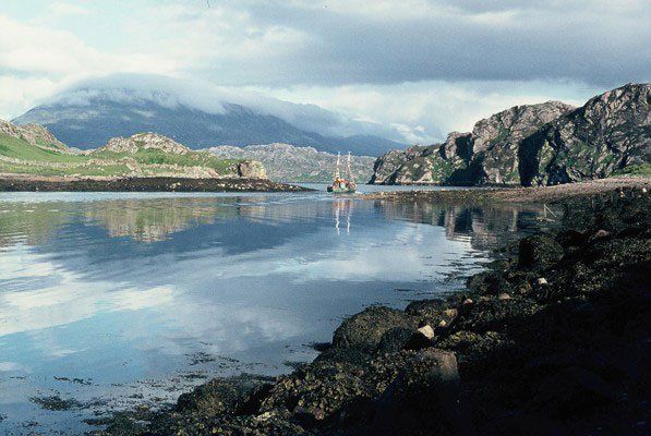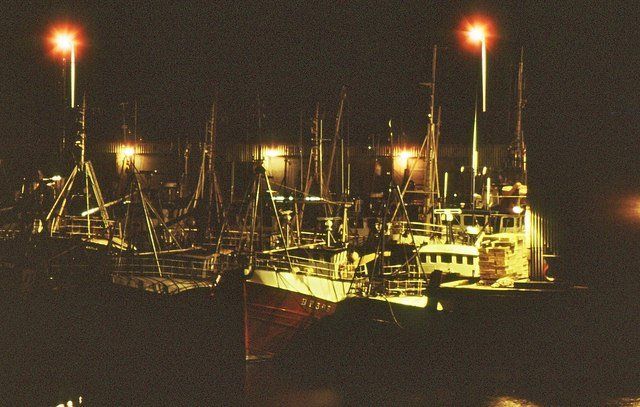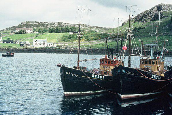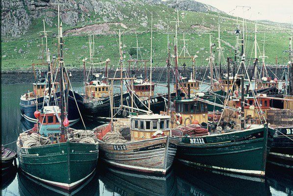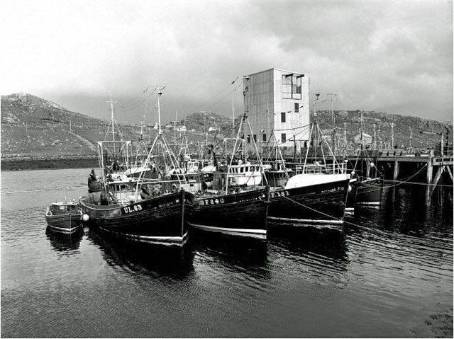 ishing boats in Kinlochbervie before the redevelopment of the harbour.