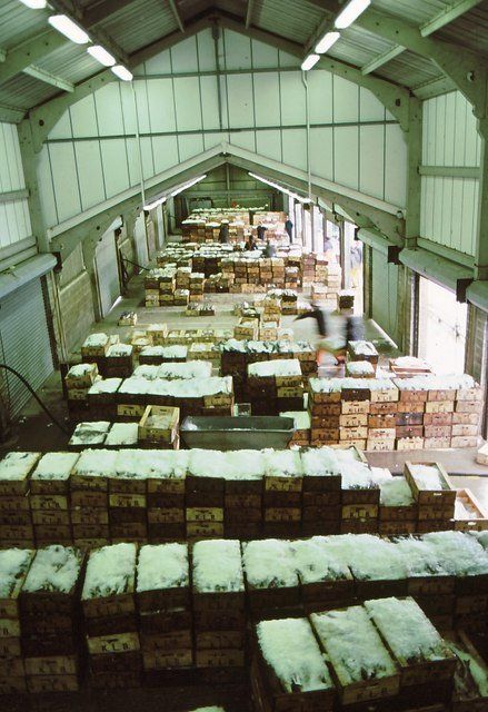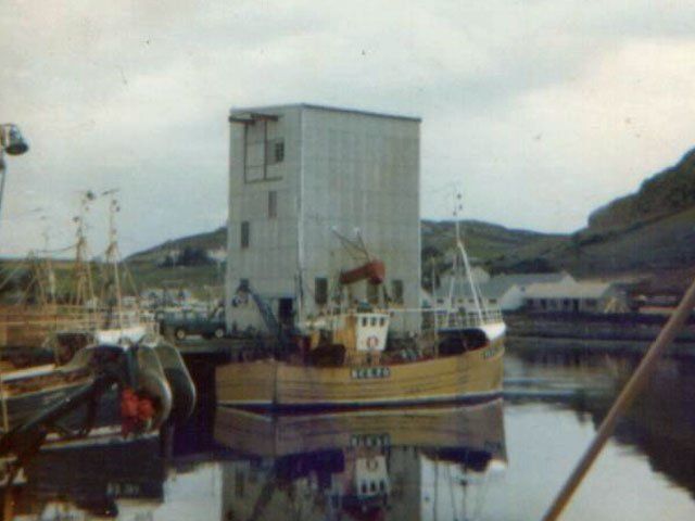 The ice factory and fish boxes await the crews at Clash, by Des Colhoun. (March 1985)